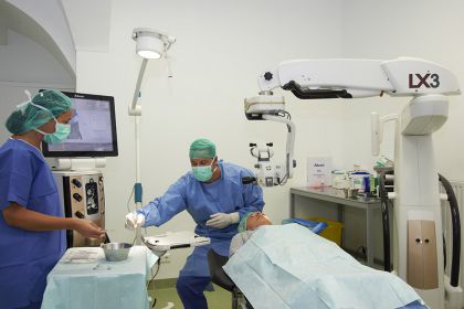 Bei der PRK findet eine Gewebeabtragung der Hornhautoberfläche statt. Das Epithel wird vor dem Laserabtrag mit einer Alkohollösung angelöst und dann mit einem einfachen chirurgischen Instrument zur Seite geschoben.